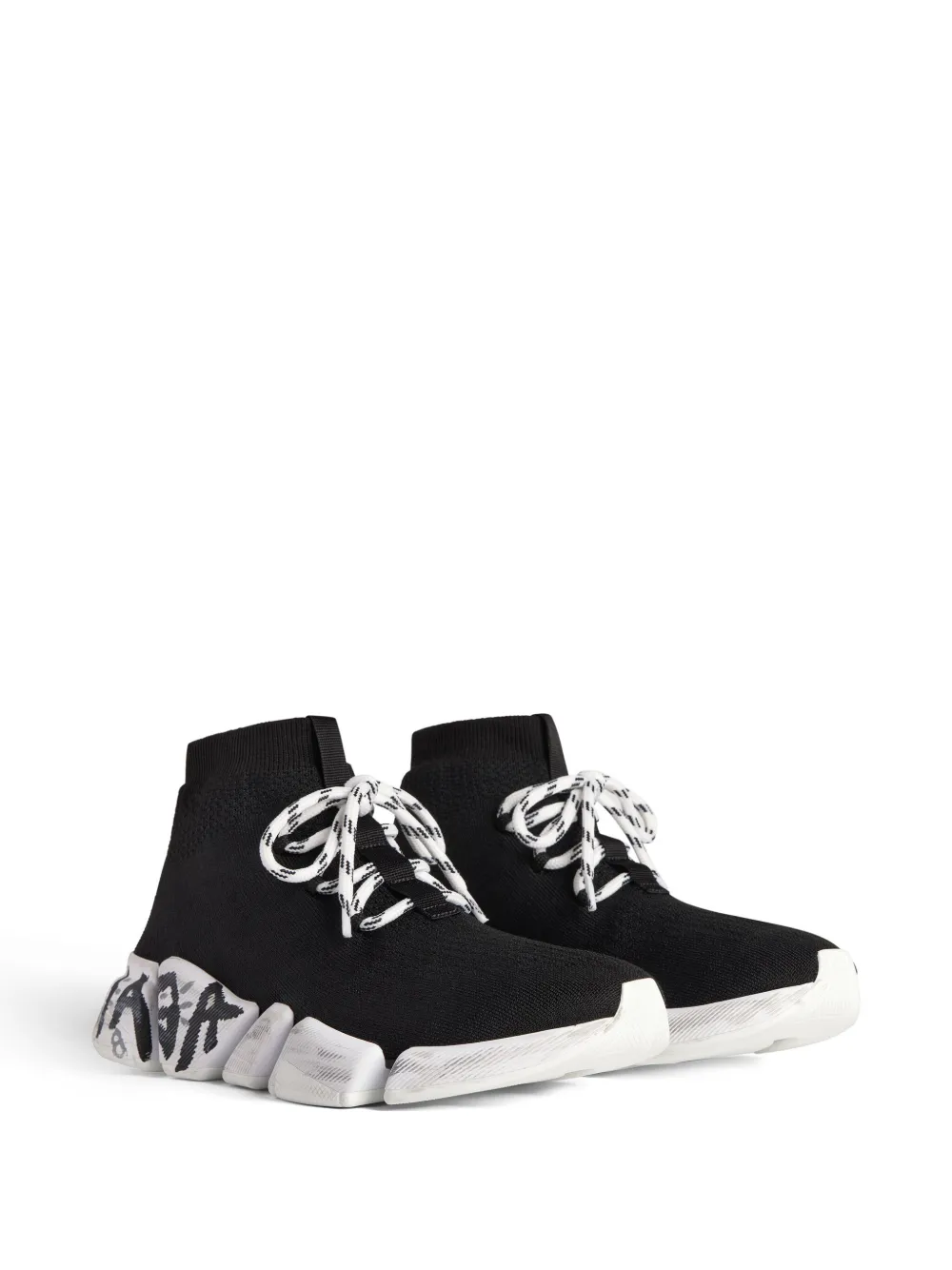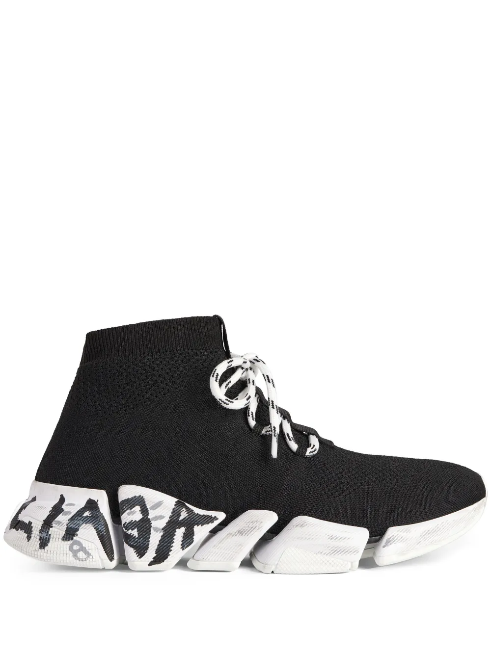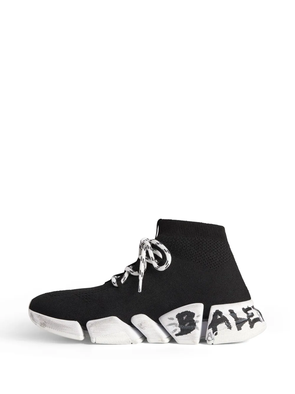 The Balenciaga Speed 2.0 graffiti sneakers combines premium materials with sleek design for lasting comfort and style. Perfect for everyday wear or as a standout piece in your collection.